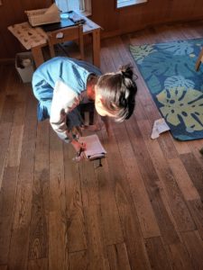 3、4、5歳児のお兄ちゃん、お姉ちゃんたちが4つのチームに分かれて毎日おやつの後にお部屋のお掃除をしてくれています😊『ここも汚れてるかなぁ~?』細かい汚れも見逃しません!!お掃除が終わったらチームのリーダである年長さん達がチェックリストを使ってきれいになったか確認します😊『床にごみは落ちてないかなぁ...』