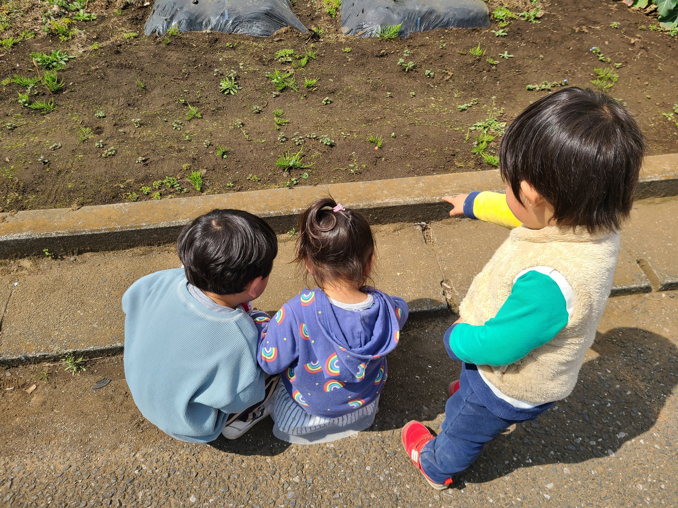なんと草に隠れている小さなてんとう虫を発見したようです!!春の訪れを自然の中から沢山感じている子ども達です♪
