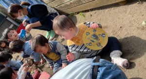 そして・・・お庭では春の虫探しに夢中の子ども達です😊