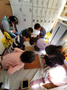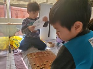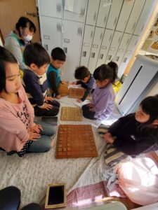 今日は将棋部の活動日でした。自分達で駒を並べて対戦の準備です。『〝対戦〟じゃなくて〝対局〟ね!』と、子ども達も本格的になってまいりました(^^;) とても集中して取り組んでいて、将棋をさす音が心地よく感じられました。駒を並べ終えると『将棋はピッだよね』と、自分達から姿勢を正していますよろしくお願いします!う~ん どこに進めるんだっけ?確認しながら自分の力で進めています