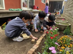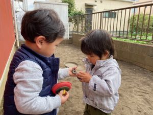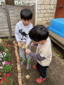 今日は天気も曇りでしたが子どもたちと相談してお庭で過ごしました😊