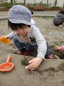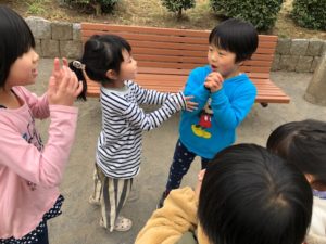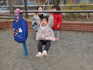 今日は0.1.2歳はゾウさん公園。 3.4.5歳は山吹公園&団地公園と分かれてお散歩に行きました♪