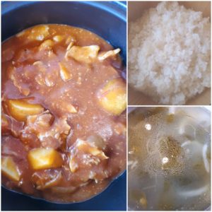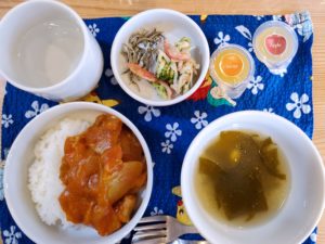 ☆カレーライス☆わかめとコーンのスープ☆ブロッコリーとカニカマのサラダ☆小魚☆プチゼリー