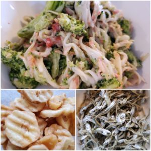 ☆ブロッコリーとカニカマのサラダ☆小魚☆バナナチップ