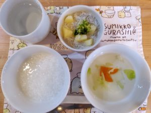 ☆7倍粥☆彩りスープ☆しらすと野菜煮☆茹でブロッコリー