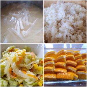 ☆玄米入りご飯/白米☆大根の味噌汁☆彩り野菜炒め☆オレンジ