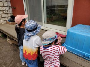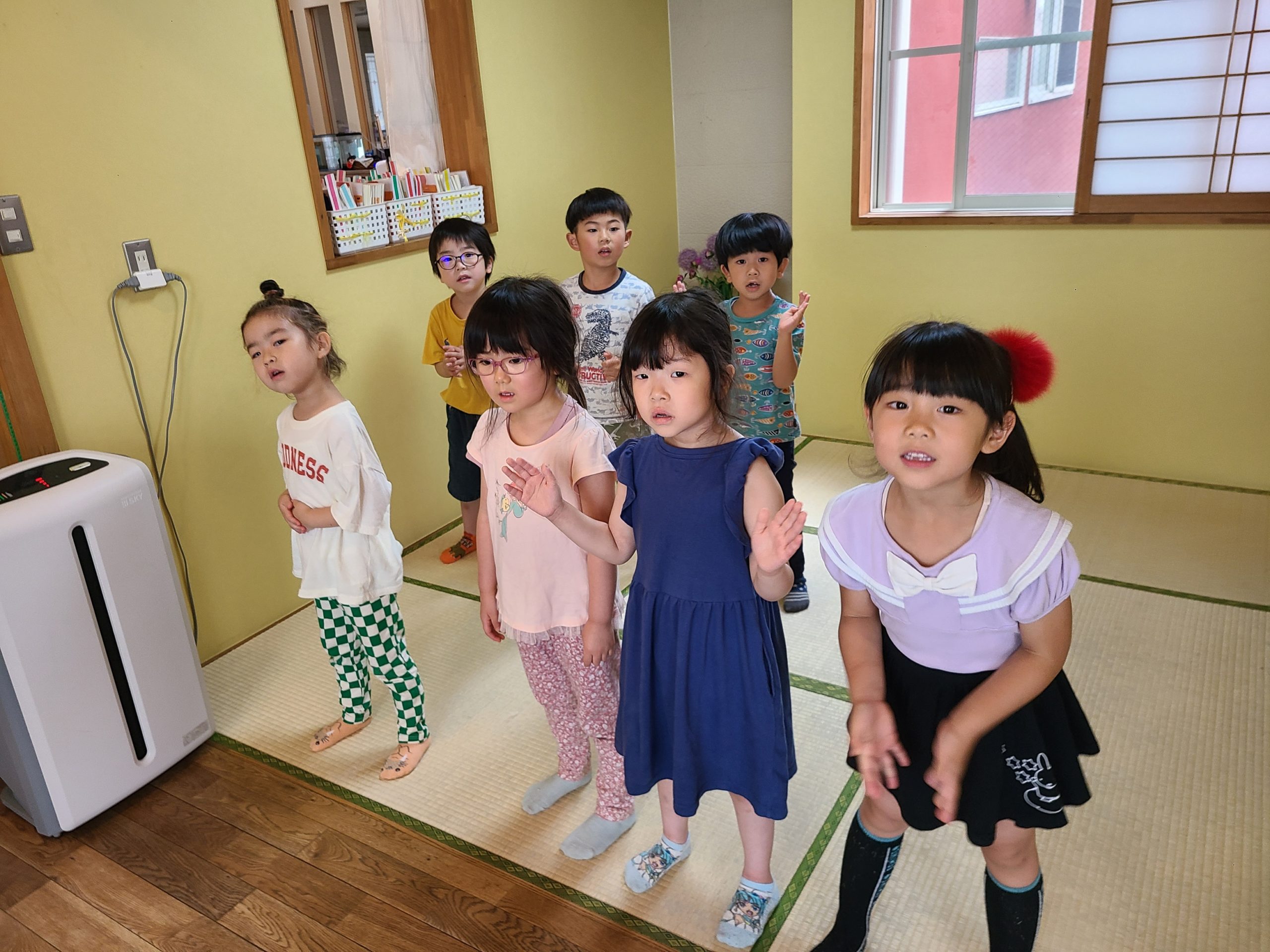 みんなで音楽を楽しんでいると・・・お庭で遊んでいた小さい子ども達が歌声に誘われて窓からそっとのぞいていましたよ😊