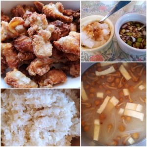 ☆油淋鶏(大根おろし/ねぎダレ)☆玄米入りご飯/白米☆なめこと長葱の味噌汁