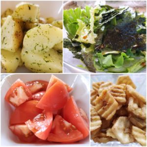 ☆レタスのりサラダ☆青のりポテト☆冷やしトマト☆バナナチップ