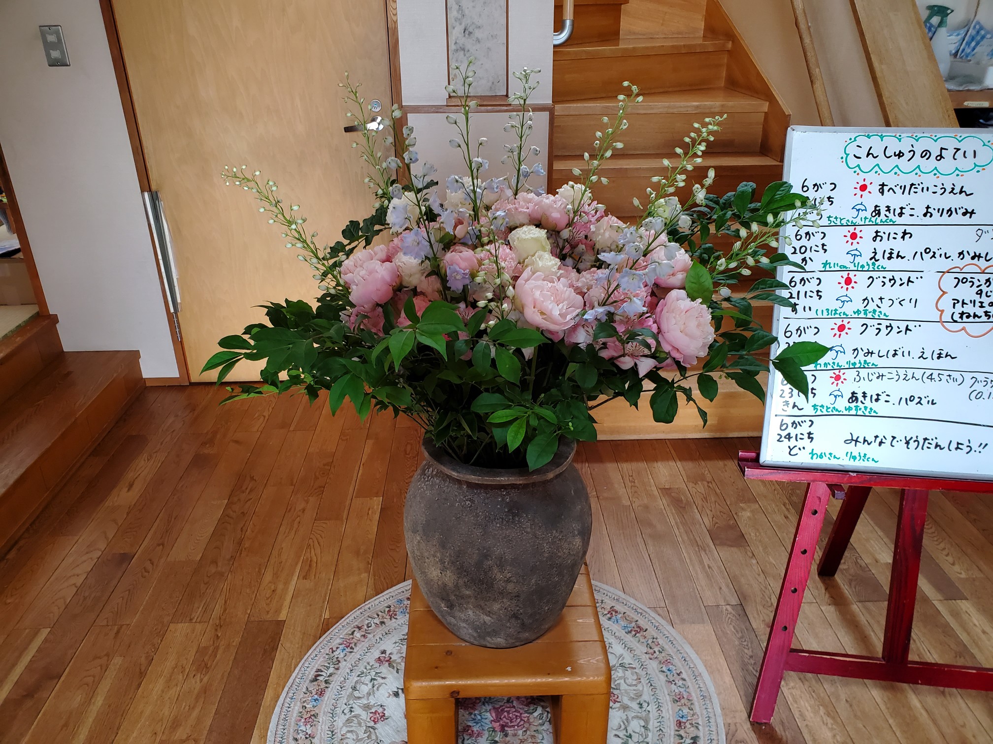 毎週火曜日お花屋さんからどんぐりの玄関にお花が届きます。