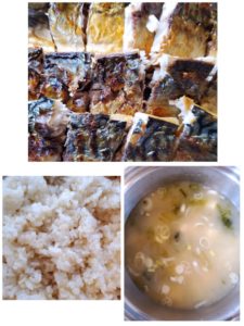 ☆鯖の塩焼き☆玄米入りご飯☆あおさと長葱味噌汁