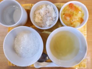 ☆7倍粥☆大根の味噌汁☆鶏挽肉と豆腐煮☆マッシュポテトの野菜添え