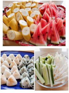 ☆バナナ&すいか☆おにぎり(鮭、わかめ)☆胡瓜&大根