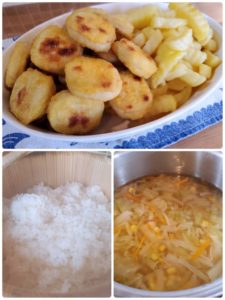 ☆チキンナゲット&ポテトフライ☆玄米入りご飯☆野菜コンソメスープ