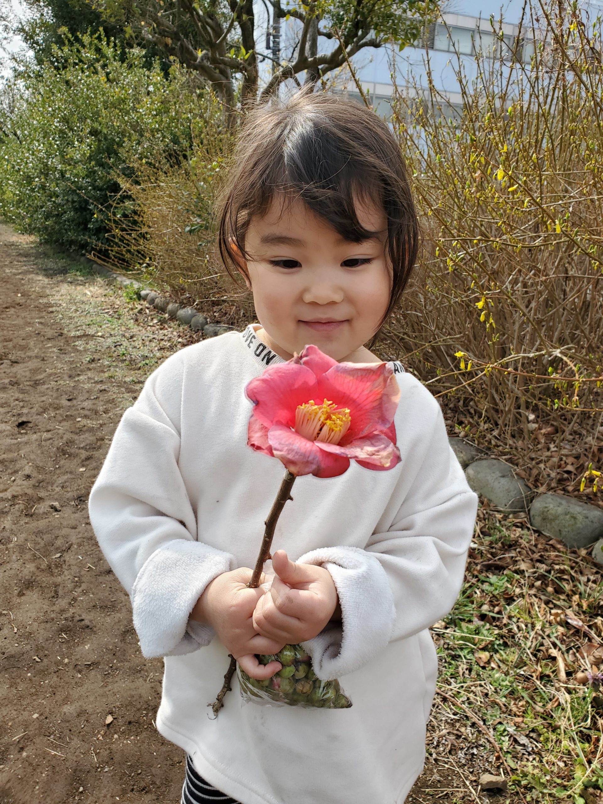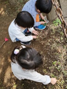 今日は園の近くの(通称)トトロ道にお散歩に出かけました。やわらかな日差しの中で、ちょっとした原っぱに寝っ転がってみたり、木のトンネルの中を行き来したり、中には一度は散った花を小枝に付けて、こ~んな素敵によみがえらせている子どももいました✨子どもたちの豊かな発想が光っていました。