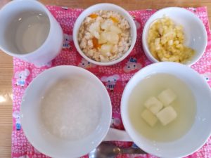 【後期】☆7倍粥☆鶏挽肉と夏野菜煮☆豆腐のスープ☆バナナ