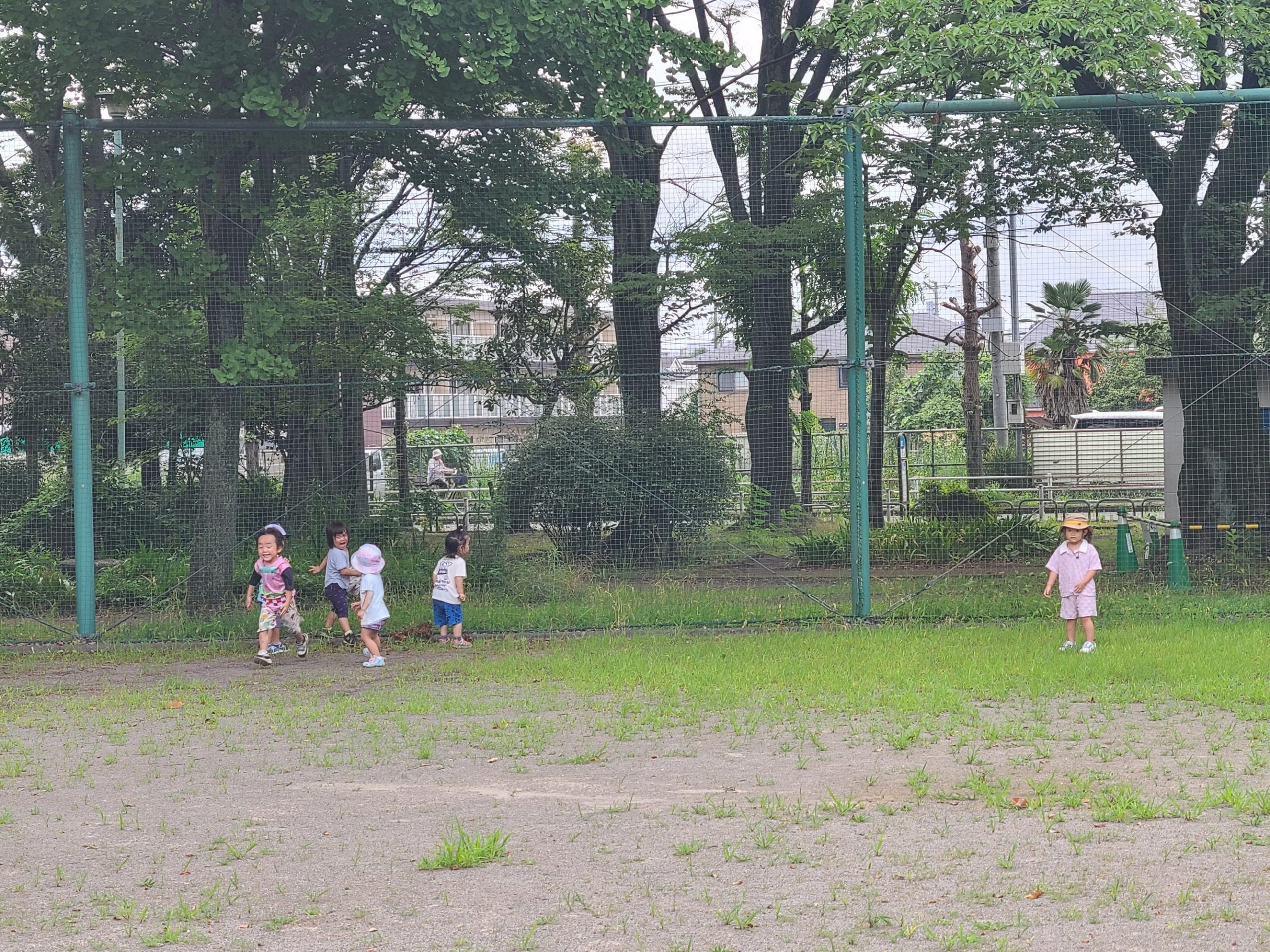 今日は年長さん年中さんがお泊まり保育でした♪小さい子ども達はみんなでお兄ちゃんお姉ちゃん達が探検に出発するのを見送った後グラウンドに行きました!!