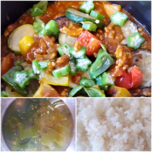 ☆夏野菜カレーライス(玄米入りご飯/白米)☆わかめスープ