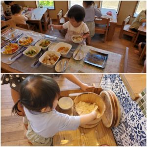 朝の集いで熱中症にならない為に気を付けることは…?と子ども達と話し合っていると「栄養ご飯~!!」と意見が出ました!!