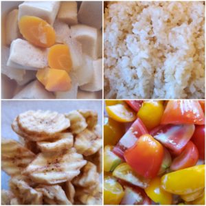 ☆冬瓜と高野豆腐煮☆玄米入りご飯/白米☆ミニトマト☆バナナチップ