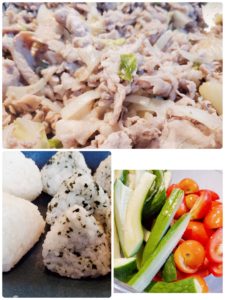 ☆肉野菜炒め☆わかめご飯☆胡瓜スティック&ミニトマト