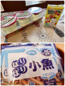 ☆りんごゼリー☆野菜ジュース☆ポリポリ小魚
