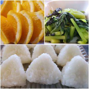 ☆おにぎり☆小松菜ののり和え☆オレンジ