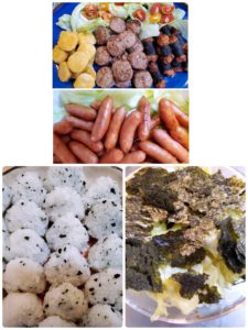 ☆ナゲット☆ハンバーグ☆のり巻きチキン☆ウィンナー☆おにぎり☆レタスのりサラダ☆ヨーグルト☆野菜ジュース