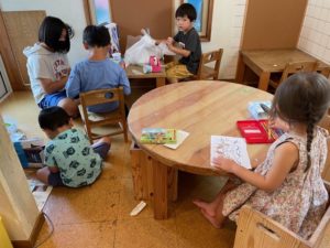 そしてボランティアのお兄ちゃん、お姉ちゃんが来てくれて絵本を見たり色んな物を作ったりして沢山遊びました♪