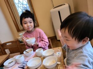 大きい子ども達から小さい子ども達までみんなで一緒に過ごしているからこその魅力の一つ!!大好きなおねえちゃんと一緒に食べるランチ・・・嬉しいなぁ~♪♪おねえちゃんも優しい笑顔でにっこり😊
