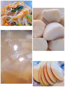 ☆ほうれん草の胡麻和え☆大根の味噌汁☆里芋の煮っ転がし☆りんご