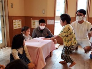 みんなでおやつを食べたあと、最後にお花をプレゼント🎁