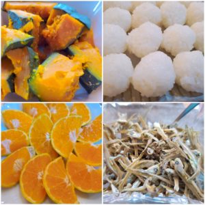 ☆おにぎり☆蒸かし南瓜☆小魚☆みかん