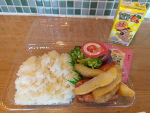 ☆ご飯☆ふりかけ☆ウィンナー☆ポテトフライ☆ブロッコリー☆プチゼリー☆野菜ジュース