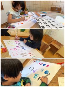 分からない数字はカレンダーを見て書いたりしながら、集中してアトリエの日を楽しんでいた子どもたちです♪♪