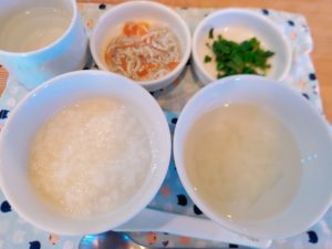 【完了期】☆軟飯☆蕪の澄まし汁☆しらすのだし煮☆蓮根のきんぴら☆ほうれん草ともやしの和え物☆りんご