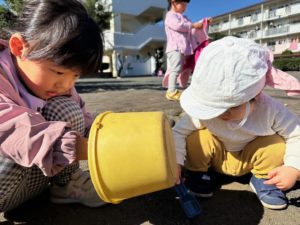 日中は暖かくアリさん🐜が活発に動き回っています。それを必死に追いかける子ども達です😊