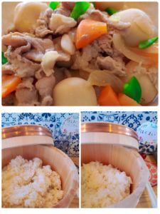 ☆里芋肉じゃが風☆玄米入りご飯☆白米