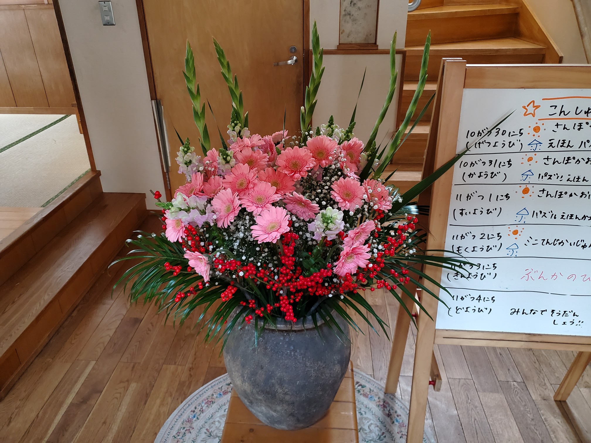 毎週火曜日お花屋さんからどんぐりの玄関にお花が届きます。