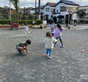 昨日と比べると気温が低くて風も少しあったので寒かったのですが子どもたちは元気に遊んでいました😊