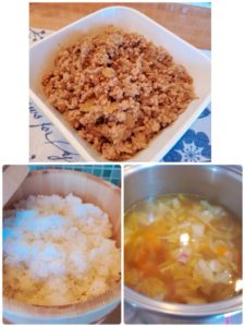 ☆そぼろ丼☆白菜のスープ
