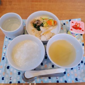 【後期】☆5倍粥☆大根味噌汁の上澄み☆鱈の煮魚☆ポテトサラダ☆大根葉のおかか和え☆ベビーダノン