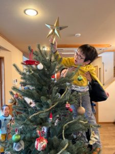 最後は代表して年長さんがトップスター☆を飾って完成しました~🎄✨