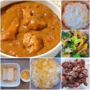 ☆チキンカレー☆ブロッコリーおかか和え☆キャベツのスープ☆大根スティック☆レーズン