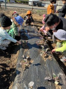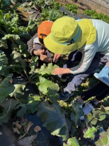 畑では冬野菜が大きく成長中です♪「かぶが大きくなってるよ~!!」「のらぼうは大きくなったかな?」