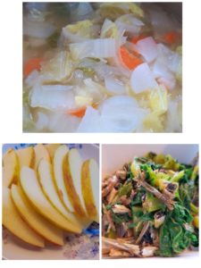 ☆季節野菜の味噌汁☆りんご☆大根の葉と小魚炒め