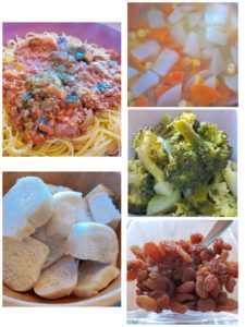 ☆茄子と豚挽き肉のトマトパスタ☆手作りパン☆根菜のコンソメスープ☆茹でブロッコリー☆レーズン