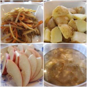 ☆蒸かしじゃが芋☆金平ごぼう☆わかめと大根の味噌汁☆りんご