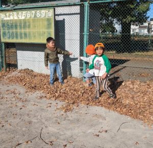 「お兄ちゃん達楽しそうだな~私達も落ち葉で遊んでみよう♪」