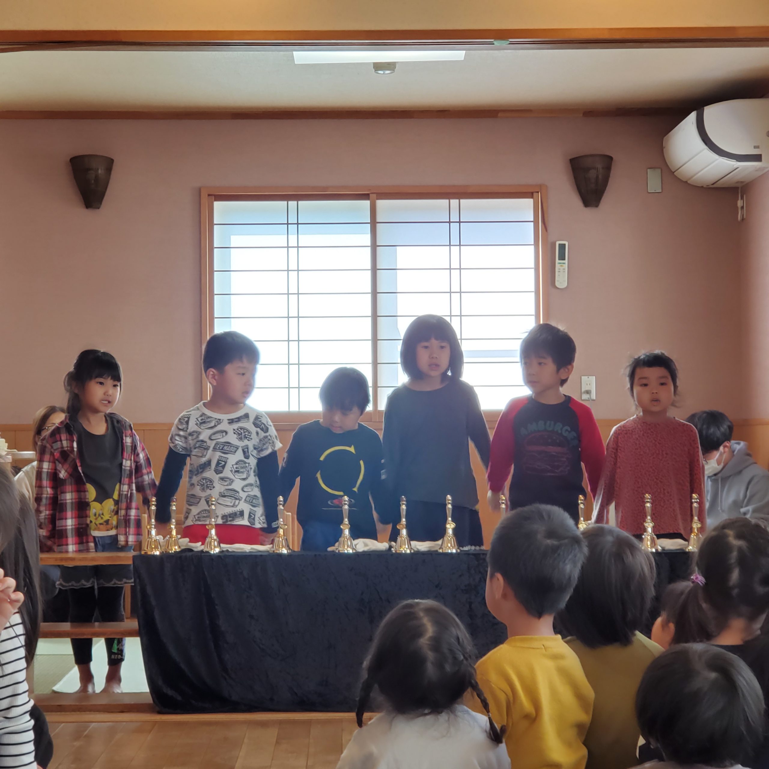 いよいよ前日に迫った卒園式。今日は当日出席できない小さい子達に見てもらいました。いつもと違う雰囲気を感じ取り小さい子達も真剣な表情で始まるのを待っていました。オルゴールの静かな曲が流れると「泣きたくなっちゃう」と3歳児の女の子は目をウルウルさせていました。幕が開くとそこには一段とかっこよく見える年長さんが堂々とした姿で現れ、「うわっ。かっこいい…」と思わずつぶやく年中さん。年長さん達は今まで練習してきた事を自信を持って見せてくれました。そしてその姿をよーく見ている小さい子達の姿もまた立派でした。それぞれの目にどんな風に映ってどんな事を感じたのでしょうか…(都合により他の写真は後日添付させて頂きます💦)